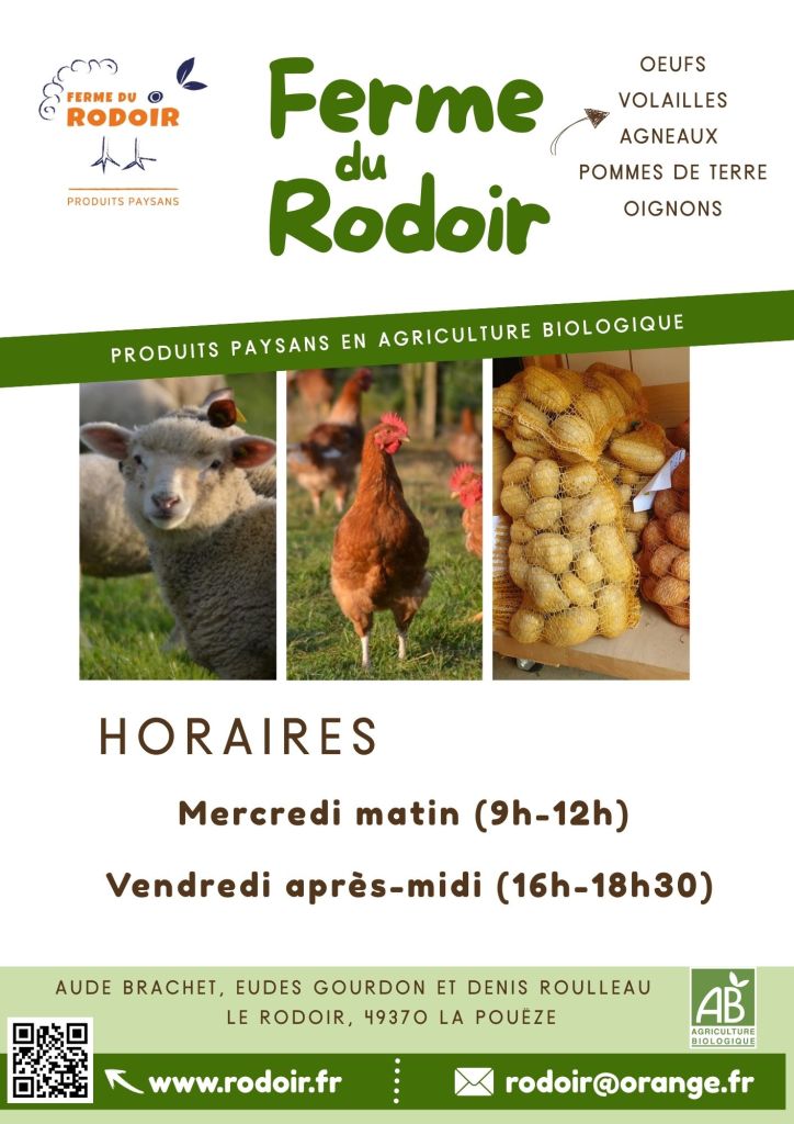 Ferme d’élevage en agriculture biologique, proposant de la viande ovine et des volailles en vente directe à la ferme.